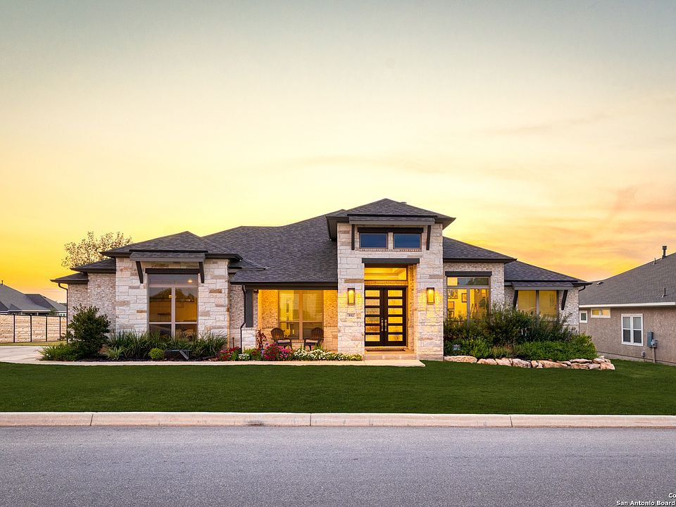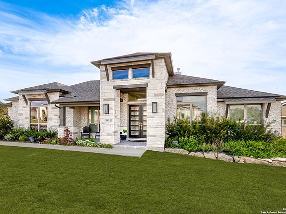 Welcome to 552 Falcon Cove, an upgraded and stylish Perry Home that is truly move-in ready. Situated on a desirable half-acre lot within the sought-after Medina ISD, this property offers the perfect blend of comfort, function, and design. This spacious residence features 4 bedrooms, 3.5 bathrooms, and an open layout designed for modern living. The living room centers around a cozy fireplace, while the chef's kitchen is highlighted by a large island, upgraded appliances, and designer finishes. The spa-inspired primary suite boasts a walk-in shower and luxurious details, creating a true retreat. Additional highlights include a 3-car garage with extra storage, an extended covered patio with upgraded outdoor living, and energy-efficient enhancements throughout the home. This property is still covered under the full Perry Homes warranty.
