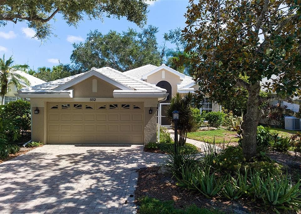 One or more photo(s) has been virtually staged. Offered furnished. Charming villa home within the artfully appointed and luxuriously shaded landscaping of VGCC. Where form meets function within 1,767 sq. ft., 3 bedrooms (one readily convertible as a den), 3 full baths, great room, Florida room plan. In soft coastal colors, all tile floors, volume ceilings, crown moldings, light cabinetry, hard surface cabinets, and stainless appliances. The under screen lanai has been expanded with paver brick flooring, similarly corresponding to the driveway and walkway. Structurally and mechanically secured with a 2015 tile roof and replumb, 2017 painted exterior, recently installed appliances/light fixtures, and power surge protector. Venice Golf & Country Club is a member owned, preeminent private club, Geo-Certified Audubon Sanctioned community. Virtually every expectant and to the highest standard amenity of a special community of this calibre is here. Over the past several years the championship 18-hole golf course, clubhouse, swimming and bathing pools and spa, tennis, fitness, wellness, formal and casual-indoor and outdoor dining and cocktail lounges, preserves and walkways have undergone extensive multi-M$ renovations. Membership is required of all homeowners with a choice of Club (social) or golf membership.