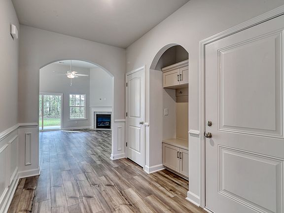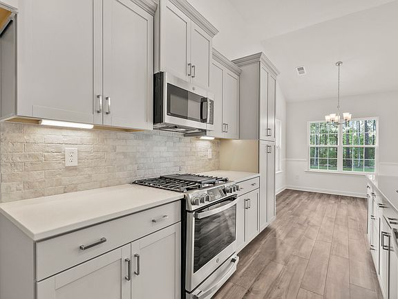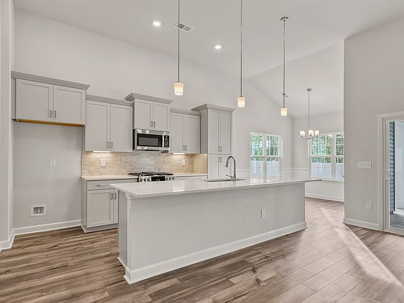 Want a manageable size home, but still want some nice touches? This Allerton home plan is for you! The elegant foyer with judge's panels, chair rail, and archways welcome you into the home. Along with three bedrooms and two baths, you'll have a corner fireplace in the family room with 12-foot ceilings, overlooking a large covered patio with a large private backyard. The extra large flush quartz countertops, single bowl sink, upgraded cabinet construction with soft close, under cabinet lighting, tile backsplash, and a GE dual fuel range are among the features found in the kitchen. The primary suite features ten-foot ceilings, a raised double bowl vanity with quartz tops, a tiled shower with a glass enclosure, and a generous walk-in closet. Other features in this home include ceiling fans, an upgraded tub with tile surrounding a quartz vanity in the second bath, and flooring consisting of ceramic tile in the baths, plush carpet in the bedrooms, and luxury vinyl plank throughout the rest of the home.
