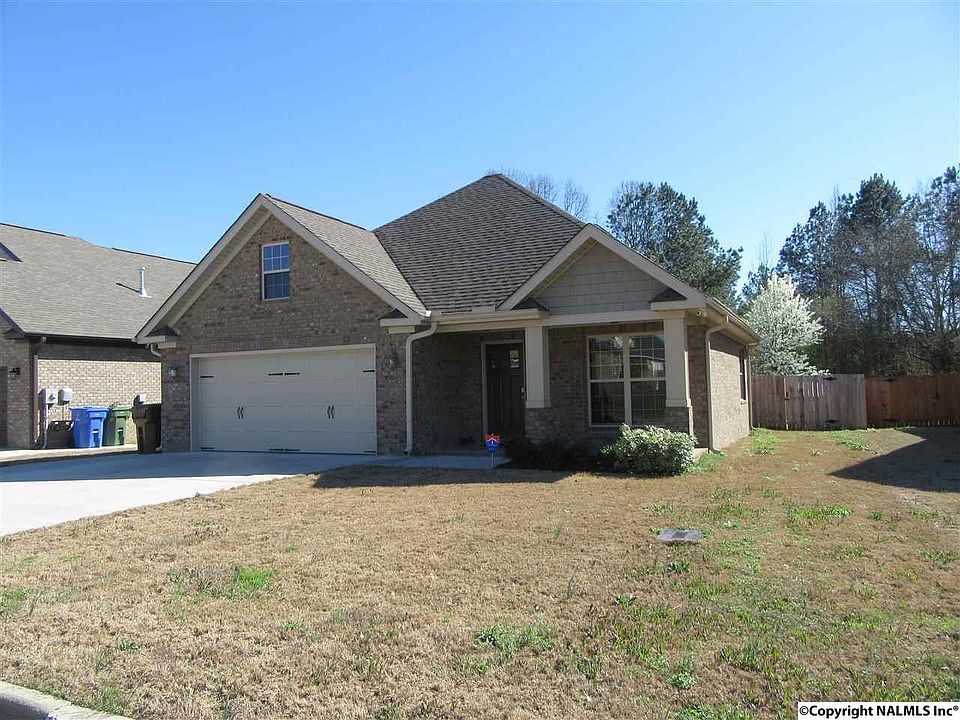 Hartselle Beauty - Don't Miss this 3 Bed, 2 Bath 2 Year Old Brick Home in Lake South Village - featuring walking trails and community lake! The front porch entry opens to large living rm with wood floors, high ceilings & beautiful trim work details! Open flow into formal dining and kitchen for easy entertaining! Dream kitchen with large eat-in island, granite counters, ss appliances & beautiful pendent lighting! Isolated master suite is great size with walk-in closet & glamour bath with shower featuring 2 shower heads, large vanity & soaking tub! 2 guest rooms + guest bath. Walkup attic could be finished for another room if needed! Covered back porch overlooks fenced yard. 2 car garage.