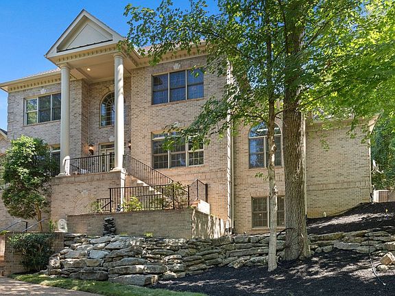 Prepare to be impressed by this stunning all-brick home, featuring 5 bedrooms, 5.1 bathrooms, a full, finished basement with in-law or guest suite and a 3-car side-load garage. Exceptional, private lot with towering oaks. Step into a grand two-story foyer with Palladian window, travertine, and granite flooring. Ten-foot ceilings throughout with an open, flowing floor plan. Flooded with natural light and showcases exquisite architectural details—triple crown molding, 8" baseboards, wainscoting, and tray ceiling and upgraded lighting throughout. Freshly painted with new carpet throughout, this home offers separate living and dining rooms with elegant columns defining space, yet an open concept. A private office with a built-in desk and shelving, and an elegant powder room. Spacious family room with custom cabinetry, bookcase, and central, stone fireplace. The gourmet kitchen boasts an eat-in kitchen area, brand-new quartz counters and backsplash, peninsula island with eating space, built-in desk, and premium cabinetry. Fantastic 11x walk-in pantry with built-in shelving. The main-level primary suite is a serene retreat with a double tray ceiling, spa-like bath, custom walk-in closet, and private access to an enclosed sunroom with a second fireplace, granite wet bar, and seven patio doors leading to a large Trex deck. A sweeping staircase leads to the three upper-level en-suite bedrooms, each with a private bath and spacious walk-in closets. The finished basement features a guest suite, a second office, a laundry room with a utility sink built-in ironing board. A 3-car side-load garage offers extra storage and a tall third bay. Enjoy a private, wooded backyard with a cleared entertainment area and a built-in doghouse under the deck. Additional features: central vacuum, sprinkler system, alarm, surround sound, extra-tall 3rd bay with car vac and EV charger.