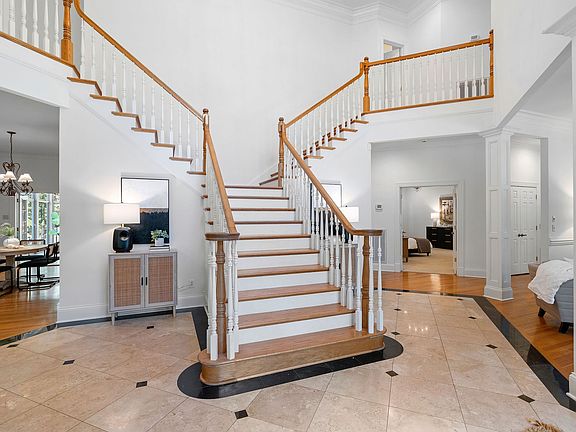 All-brick homePrivate wooded backyardExquisite architectural detailsCleared entertainment areaThree upper-level en-suite bedroomsGrand two-story foyerTray ceiling