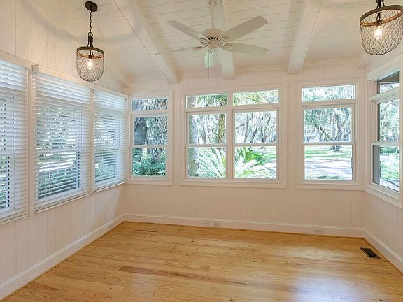 One of a kind custom home in the Village area. Overlooking oak-studded Mallery Park! This beach cottage has been completely renovated! Walk to the beach, restaurants, pier, lighthouse. Home features authentic wide board heart of pine flooring, white beach board panelling, touches of tabby, accents of tongue-in-groove ceiling, pre-wired surround sound, gas cook top and gas fireplace. Master suite on main level. 2 additional bedrooms upstairs have ensuite baths and lots of closet space. Home features two sunrooms. One at the front of the home and other in the back that connects to a covered porch. Oversized garage with extra storage. Large laundry room with sink and cabinets. 50 year shingles, low maintenance Hardi Plank exterior. Enjoy peaceful outdoor living in the secluded, beautifully landscaped back yard complete with a moss draped live oak and brick paver patio.