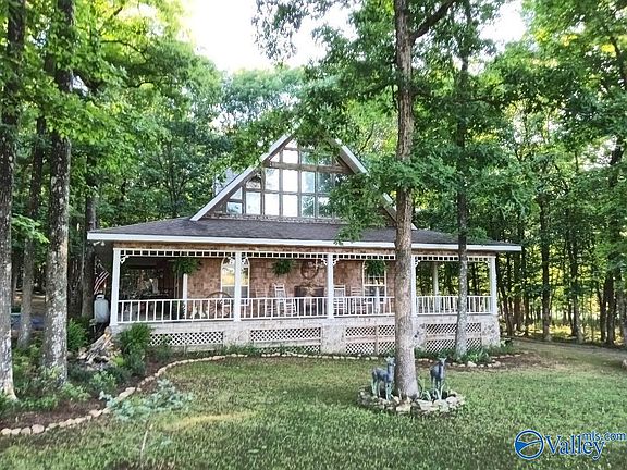THIS SECLUDED COTTAGE STYLE home is surrounded with trees and nature. You will fall in love with the wraparound porch, cedar shake siding, 30' stone, wood burning fireplace, soaring ceilings & exposed wood beams. Charming and quaint kitchen with a barrel ceiling with wood taken from the grandfather's old barn. Beautiful wood shutters put a finishing touch to this gem. Add a few of your own taste to this timeless property and be the envy of Mentone. Perfect for an investment property for rentals or primary residence. Property is close to DeSoto State Park and Falls, Little River Canyon and downtown Mentone.