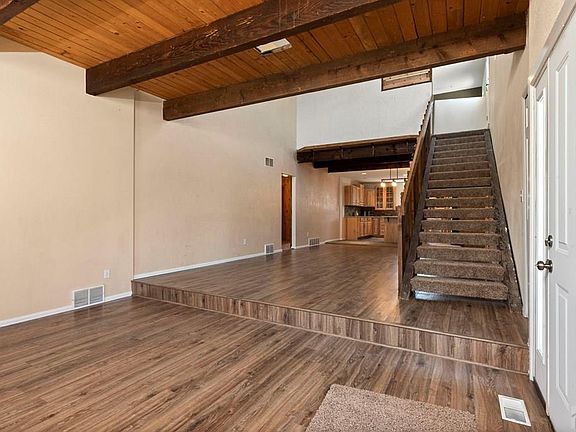 Seller has REDUCED THE PRICE! Come experience this unique home in Pueblo West. Year built says 1976 but when you walk in, you will clearly see the updates! The home has modern features from the kitchen to the bathrooms and the flooring. The yard needs some TLC but there is so much potential. The open concept on the main level with the kitchen and living room allows you so many different seating options. The kitchen has solid surface counters with stainless appliances and the living room/family room are open to the kitchen. You can create a formal dining or not, it's up to you. The living room can be divided into two different types of seating areas as well. This is a must see. There are so many possibilities. There are 3 bedrooms on the main floor with a master bedroom on both the main and the upper, if desired. The room upstairs could also be used as an additional family room or even a great office space with mountain views. There is rooftop access and a remodeled 3/4 bath on the upper level. There is a mud room off the garage with the laundry space and a quarter bath.