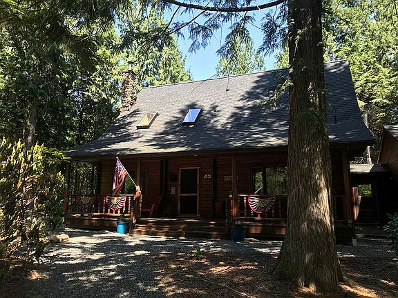 Enjoy a story book house in a fairy tale setting from this wonderful North Western red cedar Pan Abode log home. Inside you'll find soaring, ceiling, an interior brightened by oversized skylights, a wood fireplace with crackling fires for those winter nights - simply a warm & cozy atmosphere, outside, entertain either on the back deck overlooking the yard, gardens & woods or watch (here it's mostly) deer, raccoons, steller jays & eagles go by from the front porch. Tons of storage in the upstairs closets, a quaint little shed with power. Wood burning insert. A 50 year warranty roof was put on just 3 years ago! Home also has a brand new hot water heater, and a recently serviced furnace. Bring your toys as there is plenty of parking space for RVs or anything you have! Pride of ownership shines throughout this home.