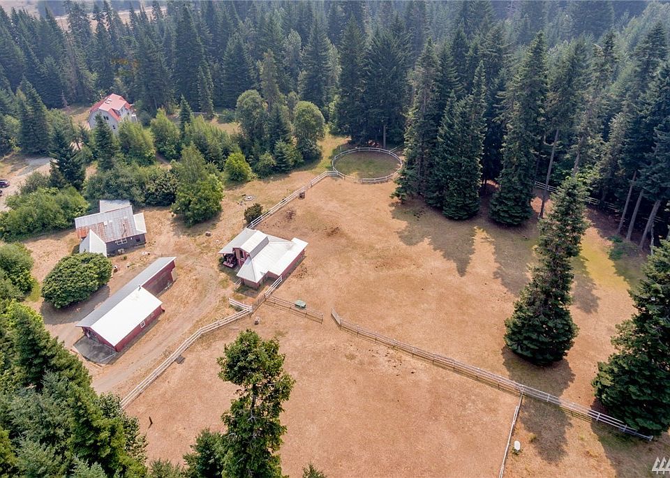 10 acre horse property w/ custom built home, barn, shop, & darling cottage. 2 homes for the price of 1! Unique property has a large 5 bedrm home and a separate updated cottage with 2 bedrooms. Main house has huge deck to enjoy the view of mountains and woods. Bath's have radiant heat floors, huge fireplace in dining/great room, wood floors in kitchen w/ charming coffee bar. The land can be potentially subdivided, has separate water cert & well - ready to go. Definite income producing property.