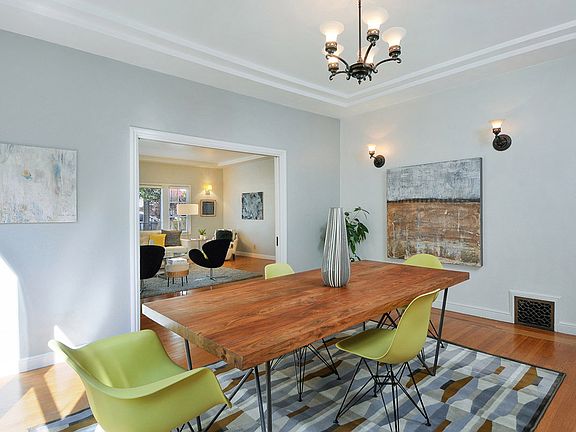 Beautifully updated duplex; tremendous pirde of ownership. Owner's unit: Large rooms, elegant designer touches and spacious floor plan. Level landscaped yard, formal Living and Dining Room. High ceilings, hdwd flrs, designer eat-in-kit and bath. lower unit, nicely appointed; agreat source of income.