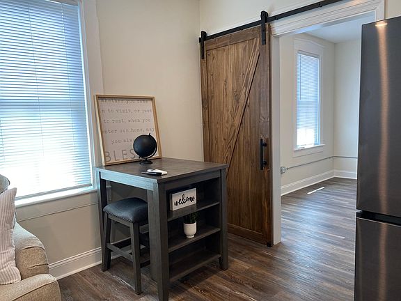 Brand new unit, completely renovated from top to bottom! This one bedroom/one bath unit is offered fully furnished and includes all utilities. There is an open concept living/kitchen area with a brand new sleeper sofa, table and chairs, and 55" HD TV. The kitchen features new Samsung appliances in black stainless, granite countertops, and all basic cookware. The bedroom has a king sized sleigh bed. Your full bath is right off of the bedroom and has a walk-in closet as well as an Electrolux washer/dryer set. Each unit is allowed one vehicle in our off street parking lot. The apartment is a second floor walk-up. The lease is month to month. Utilities included: electric, water, sewer, trash, wifi. Lease is month to month. Credit a background check is required and no pets please.