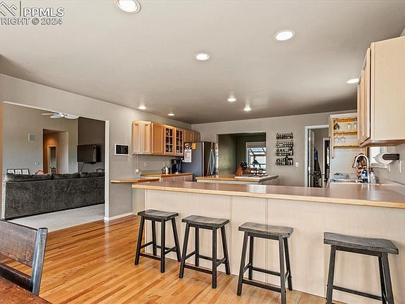 Discover the ultimate retreat with this rare opportunity to own 35 acres of serene, private land, just minutes from Colorado Springs. Properties in this area are highly sought after, and with no HOA restrictions, the possibilities are endless! Whether you're dreaming of keeping horses, honing your marksmanship, cultivating a garden, or simply stargazing at the Milky Way from your private deck, this property offers it all. Designed with precision, the home takes full advantage of seasonal sunlight, offering no direct sun during the Summer solstice and optimal warmth during the Winter solstice. The expansive windows flood the home with natural light, creating an inviting atmosphere year-round. Step inside to a spacious kitchen with hardwood floors, pull-out shelves, a gas cooktop, and bar-top seating—perfect for casual dining or entertaining. The adjacent dining area features a pantry and dimmable recessed lighting. A formal dining room, also with dimmable lighting. The living room is the heart of the home, with vaulted ceilings, a wood-burning fireplace (blower ducted to heat the home), surround sound, and French doors leading to a composite, steel-framed deck with a roll-down awning! A bonus office space adds character with a rolling library ladder, built-in bookcases, and a walk-out to the backyard. The master suite is a private sanctuary, offering a 21x15 retreat with surround sound, deck access, and a luxurious 5-piece bath. The bath includes an oversized tub and a custom African Mahogany walk-in closet. The home’s functionality extends to a large laundry room adjacent to an oversized 3-car garage with a workbench. Outside, the property is ready for your homesteading dreams, complete with a horse shed, corral, pasture, tack shed, chicken coop, barn, tree house, and a pet-friendly catio. Additional features include a dripper system, central air conditioning, and fireproof roofing for peace of mind. Don't miss out on this gorgeous property!