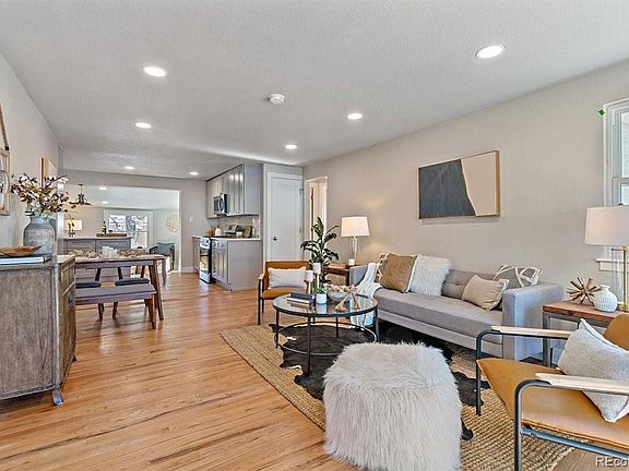 Fully Renovated Ranch Just One Mile to the Heart of Historic Olde Town Arvada. Light Filled Floorplan with Sleek New and Refinished Hardwood Floors. Open Kitchen with Ample Storage Incl Open Stainless Shelving, Gray Soft Close Shaker Cabs, Marble Countertops, All New Stainless Appliances and Eye-Catching, Designer-Chosen Backsplash. Loads of Light Through Picture Window at Front Living Area. Expanded Floorplan Adds Rear Family Room / Formal Dining Room Option. Master Suite Has Private Bath w/ Oversized Shower, Custom Tile Accents and Two Vanities. Two Additional Bedrooms + Accompanying Subway Tiled and Mosaic-Accented Full Bath. All New Paint In and Out. New Base, Case and Trim. All New Light Fixtures and Updated Electrical. Newer Roof & Mechanicals. New Central A/C. Brand New Exterior Siding. New Horizontal Fence at Front and Rear + Coordinating Front Flower Box. New Sprinkler System and Sod Front and Back. Oversized Detached Two Car Garage. Fully Permitted, Fully Engineered Renovation. Enjoy Olde Town's Dining, Water Holes and Retail Spots Just a Few Minutes Away!