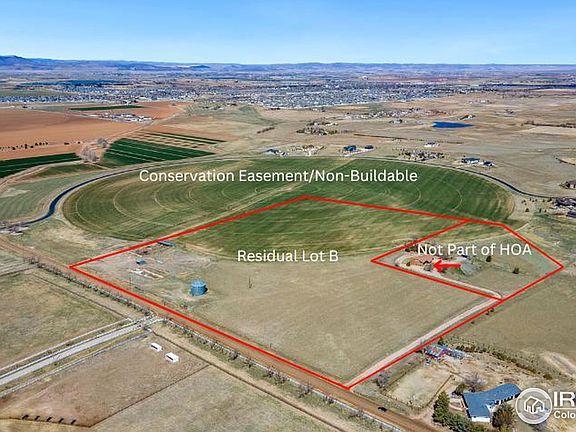 This is your chance to own one of the best unobstructed full Front Range Mountain views that Larimer County has to offer. Imagine peaceful country living with no HOA or covenants overlooking farmland preserved by a Conservation Easement. The conservation land surrounding this property to the east and west creates a natural and permanent buffer from any neighbors and insures no one can build in your view. Historically irrigated with North Poudre Irrigation Company Stock, with active ditch/carrying rights, one share of N. Poudre is available for $250,000 and not included in the offering price. This offering includes the house and 5 acres that is not a part of the Boxelder Heights RLUP with no restrictions/covenants. The remaining 25 acres consists of Residual Lot B which is a portion of the conservation easement of Boxelder Heights. A portion of Residual Lot B lies under the Boxelder Heights center pivot sprinkler and is leased out to a tenant farmer. The buyer could terminate this agreement in the future if they choose. This lovingly cared for home has only had one owner since it was built in 1977. Well built with spacious living areas, this all-brick home could benefit from updating, but the opportunities are endless. There are older corrals and loafing sheds and a large silo in the southwest corner of Residual Lot B. The property is located just a short distance off of a paved road, minutes to Wellington and approximately 15 minutes to Downtown Fort Collins.