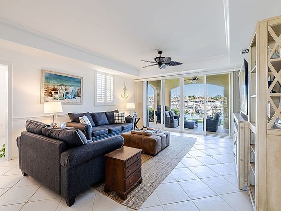 Experience refined coastal living in this beautifully furnished 3BR/2BA first-floor corner residence overlooking the harbor. Wall-to-wall windows fill the home with natural light, while the large covered porch offers a setting for alfresco dining and uninterrupted views of boats, manatees and sometimes dolphins, visiting the marina. The updated kitchen features a wonderful sunny breakfast area to bask in the Florida morning sunshine. Enjoy the convenience of a 1 car garage and effortless access to the waterfront pool, all just steps away.