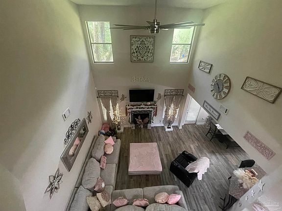 This 5 bedroom 3.5 bathroom is move in ready. When you walk in you will notice how open the living room is. The ceiling is 24 feet and makes it feel even larger. The living room opens right into the kitchen which is very large with a breakfast bar. The kitchen has an eat in area or dining area. It has plenty of countertop space for all the cooking or entertaining you could ever want. The dining room can be replaced as an office if need be. The kitchen/living room opens to a massive back yard that has an open porch with a couch that is great for hanging out. Downstairs living are has Harwood looking tile. All bedrooms have carpet. Now when you go upstairs there are 4 bedrooms with a living room that has tons of space. The bedrooms have jack and Jill bathrooms perfect for families. The living area upstairs is great for families with kids. They can hang up there while the adults hang down stairs. This is a great area that will only get better. This is great neighborhood that only continue to get better. Pace/Milton will only continue to grow so don't miss out on this great opportunity.