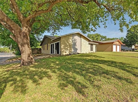 Great location! This 1-story stone home in SE Austin is located on a large corner lot convenient to I-35, TX-71, US-183, and is across the street from Mendez Middle School. Inside, you'll love the large family room with high, beamed ceiling and stone fireplace. The kitchen, open to the family room, has lots of light, a nice eating area, and stainless steel appliances. The garage has been converted into a large second living space or bedroom. Recent HVAC system. Refrigerator, washer, dryer convey.