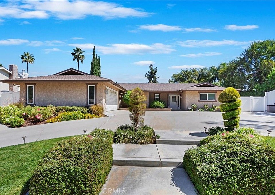 RARE BEAUTY custom remodeled single-story home located in popular Canyon Crest on #17 hole of the Canyon Crest Golf Course. Located on a quiet street with less than 2 minutes access to golf course .Has a 11,761 SF lot with newly landscaped yard, front and back, with new retainer walls and planters. Only two owners of this property and Seller being the second. House was in original condition when purchased in 2015 by Sellers. House has been completely remodeled from the ground up inside and outside. New redesigned kitchen with soft closing drawers, new cabinets, gas five burner cooktop and microwave, double convection self-cleaning ovens, dishwasher, granite counters, warming drawer, new sinks and fixtures. Separate laundry room and kitchen pantry for extra storage. Has beautiful wood, tile, carpet flooring throughout. Newer Energy efficient heating and air conditioning (16 seer 16+. New ceiling fans, new doors, new molding, and 3 large customer designed dual paned double slider doors across back of house. New wood blinds and insulated dual pane slider windows throughout. two car garage with new door with lots of storage. Newer landscaping with irrigation systems and large circular driveway. Gated RV concrete slab parking (no hookups) on one side of house and gated cart barn or storage shed on the other side of house. Just too many new items to list you’ll just have to see for yourself. Convenient to shopping, schools and freeways. If you seek comfort, convenience and a peaceful life style this gem is for you!