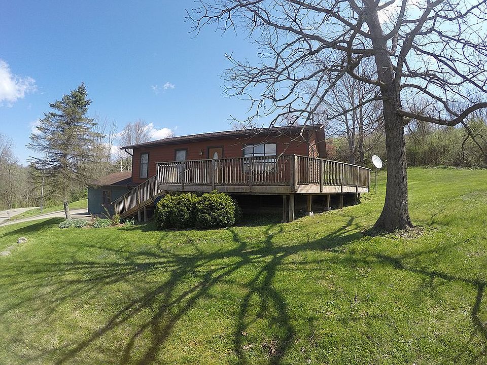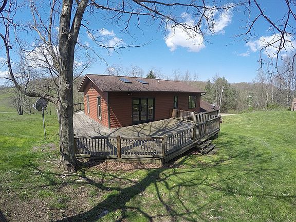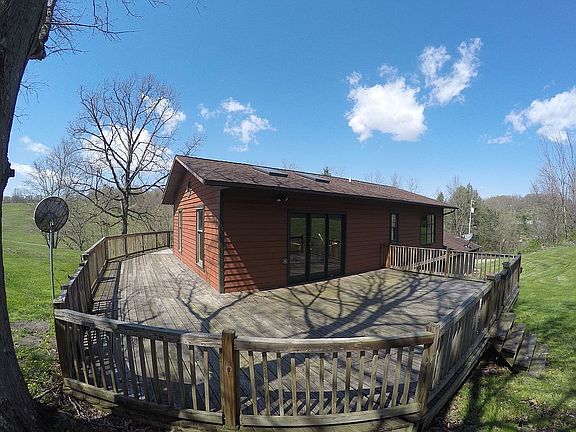 Serene Country Setting!!! If city life has you down then look no further! This is a spacious 3 bedroom/2bath country home with office/den. Open concept kitchen area with gorgeous skylights and knotty pine woodwork. All that leads to a huge wraparound deck. Finished basement with bar/man cave area. Large attached 2 car garage and nice sized laundry room. All on a private acre with amazing views and a nice garden shed. Agent Owned, will work with Realtors.
