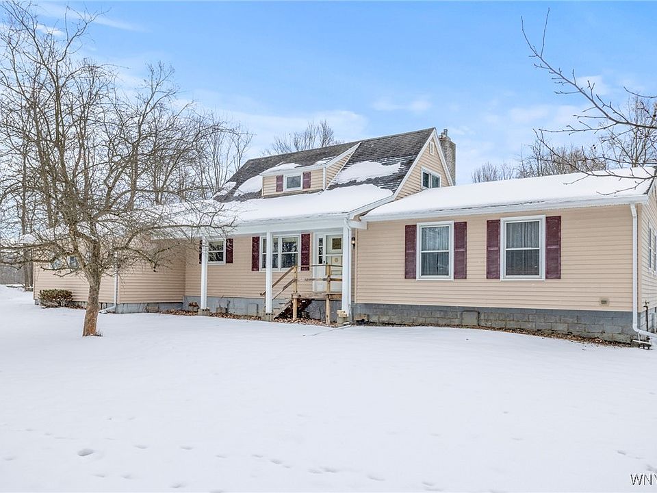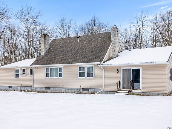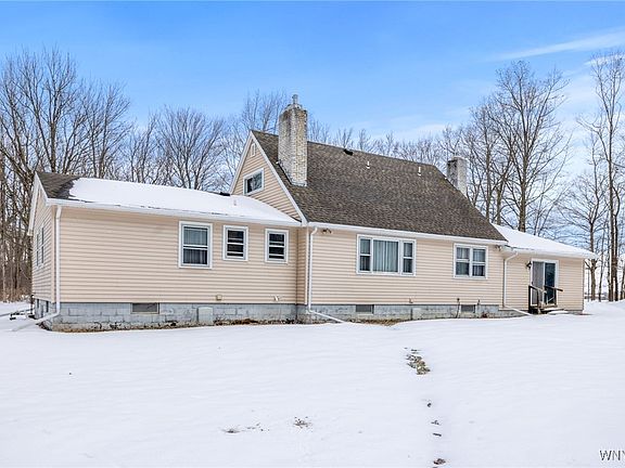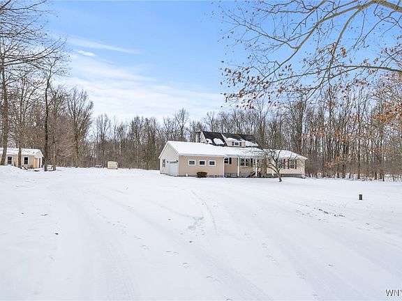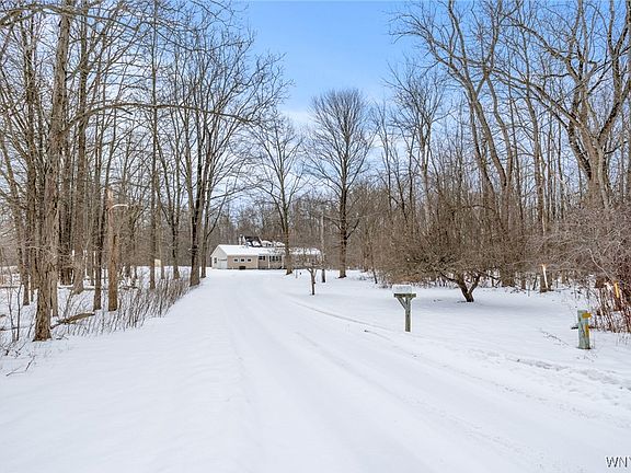 One-of-a-Kind, Residential Opportunity in a Great Location! This unique, custom-built home offers one-floor living with 3 finished bedrooms and 2.5 baths on the main level, plus the potential to finish 2 additional bedrooms and a bath upstairs to fit your style. The existing, first-floor primary suite could also be an in-law suite. The full basement, with newer mechanics (HTW 2019, Furnace 2021), is plumbed for yet another bath and ready to be transformed into more living space, recreation room, a workshop, or storage. The home features an attached 2-car garage and a detached 2-car outbuilding as well as a shed for extra workspace and storage. Enjoy two custom, stone, wood-burning fireplaces and a natural gas well with a transferable lease, providing free gas for the owner. Nestled on nearly 20 wooded acres, the property feels like a private retreat but is just minutes from major routes and less than 5 miles to the center of Batavia. Plus, public water is coming soon/confirmed for Water District 5, Town of Bethany! Located in the Pavilion School District, this is the perfect opportunity to create your dream home in a peaceful, country setting close to lifestyle conveniences. Bonus: potential to create an additional building lots on the Mayne Road frontage of the property.