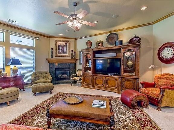 Beautiful Whitehall Home! Enjoy the living with fireplace and wall of windows. The Study has a built in bookcase and plantation shutters. Open living and kitchen with a breakfast bar, granite countertops, pantry and great storage including breakfast dining overlooking the backyard.Stainless appliances include refrigerator, microwave, oven, electric cooktop and dishwasher. The formal dining room, off the entry, features plantation shutters. Split bedroom plan.Private Master Suite, includes bathroom with double vanity, whirlpool tub, shower and walk in closet. The 2 guest bedrooms share a bathroom with a shower tub combo. Lovely covered patio. The 3 car garage features a versa lift and aluminum attic ladder. Crown mouldings, Transom window accents, carpet,wood and tile, 10 foot ceilings in living complete the features of the home. Security system and sprinkler system. Resurfaced and stained driveway. Access to Lake Hefner Parkway and Kilpatrick Turnpike. It's a Beauty!