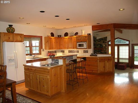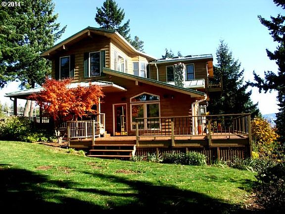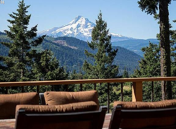 5 acres Privacy, amazing views of Mt. Hood & the gorgeous HR valley. 4300+/-sf quality home. Open floor plan. Lovely living room; real river rock fp & deck access. Custom kitchen: Mt. Hd view, eating bar & kitchen nook w/ adjacent deck. Main level full guest suite or master on main option. Upper level master suite; private deck, lovely bath. 2 more bedrms & full bath. Lower level: large family rm, office, bath, dble car garage access.