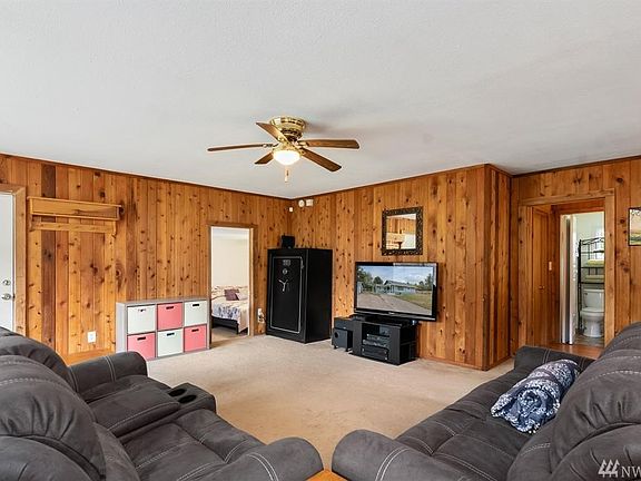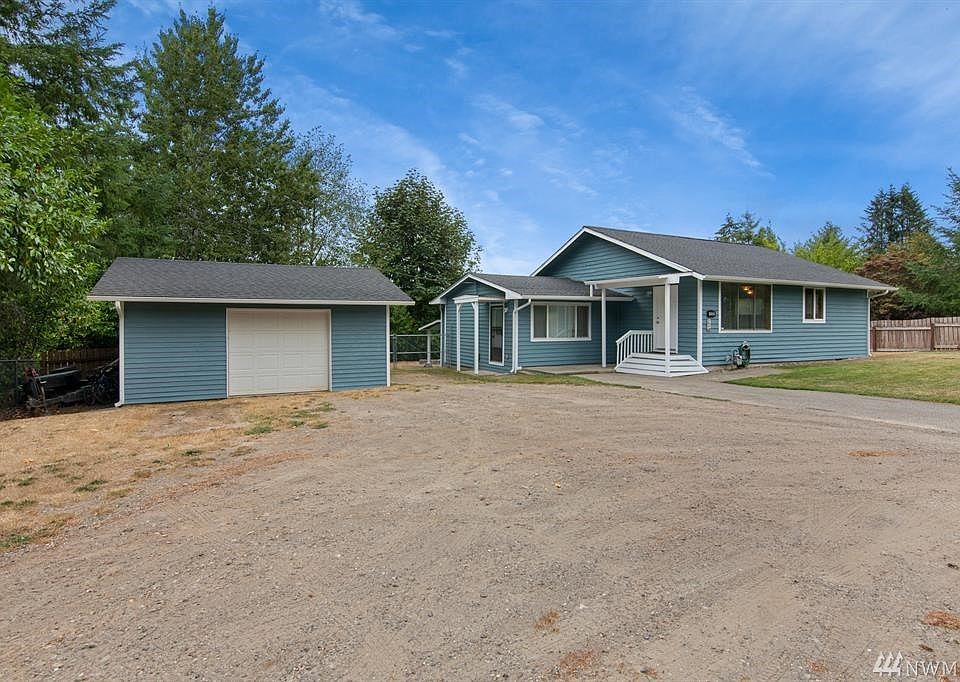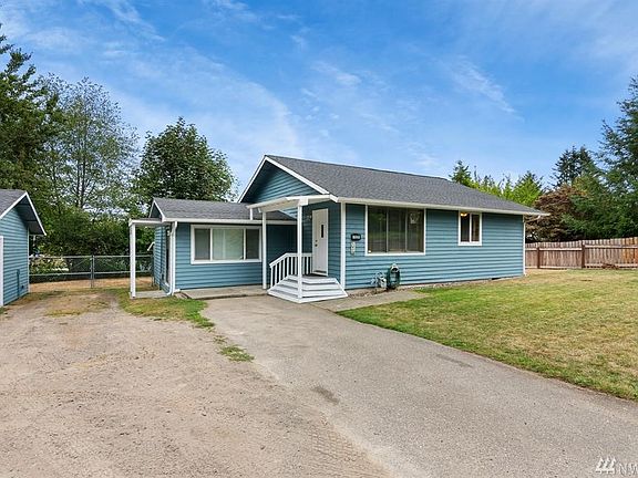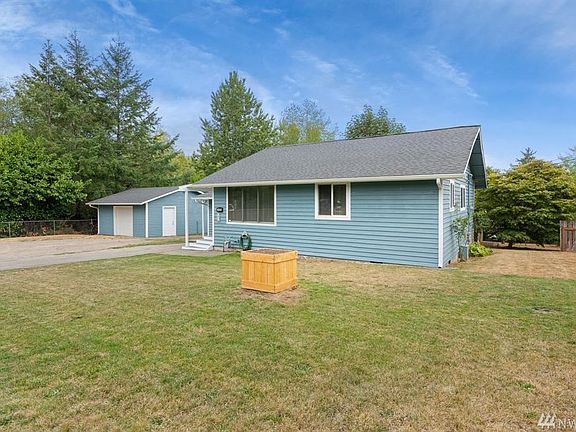 Darling 2 BR Single Level Home! This warm and inviting home includes great room with large kitchen open to living and dining rooms, knotty pine walls, freestanding gas stove, en-suite master, plus new roof, deck and exterior paint. Wonderful flat and sunny .36 acre lot, fully fenced with fruit trees and RV parking. Oversized 1 car detached garage with workshop space. Great location, just minutes to Hwy 3, PSNS and Seattle ferry!