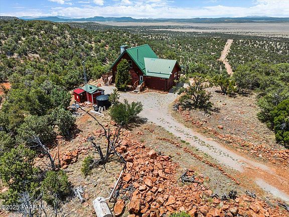Own your own Mountain top retreat! This log home is move in ready combining comfort and mountain living or, keep this gem for the best vacation place ever! Sit on the deck and relish the unspoiled mountain views from Flagstaff to Kingman, unmatched sunsets, and at night enjoy the brightest stars you've ever seen. Enjoy cooking on high end Bosch appliances, a new washer and dryer and on-demand hot water system are less than 1 year old. The home features engineered hardwoods and ceramic tile throughout, an oversized marble tile shower with dual vanities highlights the ensuite bathroom with walk in closet. This property adjoins 640 acres of State land and has a Rifle and Pistol range with an 8x16 trailer for storing range supplies. There is a greenhouse for year-round growing and walking