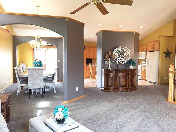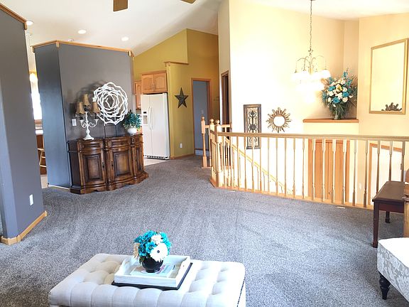 NO Specials! This Rokke Construction custom-built home is filled with natural light and lots of room to spread out or entertain. Supersized kitchen with 6 1/2 foot island and separate dining room. Flex space between kitchen and dining room. New high definition laminate kitchen countertops and new carpeting throughout. Large master bath with jetted, corner tub, and tons of closet storage. Fenced and landscaped yard, unique deck, and a lot of backyard privacy with the mature trees and shrubs. Flex space downstairs. Corner fireplace in downstairs living room. Large laundry/mud room with garage access. Extra large garage with storage units and ample rafter-storage. $339,900 or $349,900 w/realtor agent Home Owner # (701) 793-4483