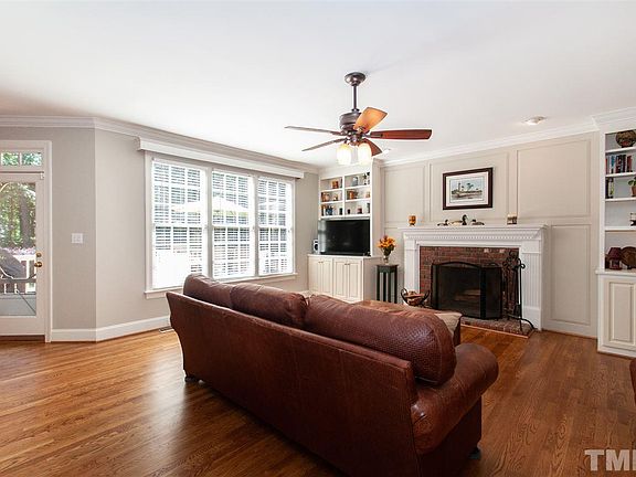 Beautiful all brick home on 1.03-acre wooded lot. Freshly painted int, new carpet. Lovely refinished hdwds on entire main flr. Lrg open kit offers updated SS appl's, new granite, island/bar, spacious brkfst area w/access to side porch, backstairs to bonus w/closet & built in bench. Elegant DR w/wainscot molding, trey ceiling & transom doorways. Spacious MB boasts his/hers WIC's (1 is cedar lined) & luxurious bath. 3rd flr flex rm w/lrg WIC. WIstorage access. Desirable N Ral neighborhood-conv to Falls Lake