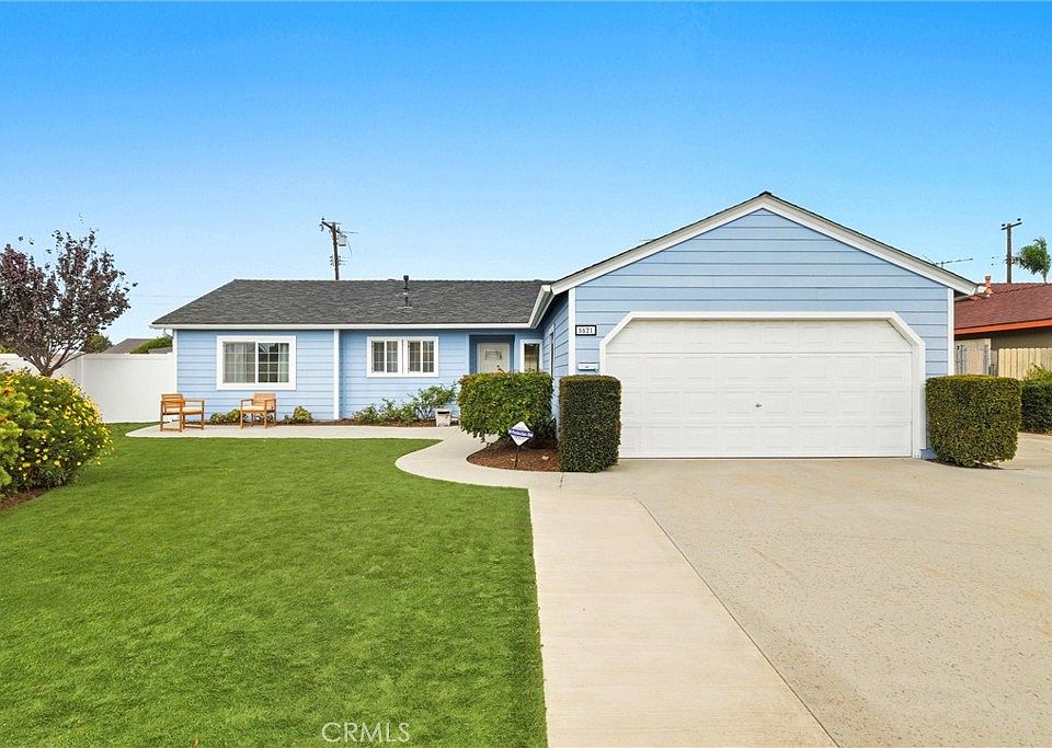 Welcome to 5521 Dollar Drive, Huntington Beach — a beautifully maintained single-story home situated on one of the largest lots in the neighborhood, offering 8,500 square feet of prime Southern California living. The expansive lot provides incredible flexibility—whether you want to uncover the potential possibilities of RV parking, building an ADU, or creating your dream outdoor oasis. The front yard showcases artificial turf and low-maintenance landscaping, combining curb appeal with convenience. Adding to the home’s value and durability, the exterior boasts a premium Hardie Board siding upgrade, known for its superior resistance to weather, pests, rot, and fire—providing peace of mind and long-term protection. Ask your insurance if you'd receive additional benefits from this upgrade. This 3-bedroom, 2-bathroom detached residence combines comfort, functionality, and opportunity. The spacious front living room welcomes you with abundant natural light and fresh new interior paint throughout. Brand-new carpet in select areas adds a warm touch, while dual-pane windows with retractable screens located in two of the rooms so there is no obstructed view. Once windows are opened screens are in place. Track-mounted shades enhance comfort and energy efficiency. The updated kitchen features classic white cabinetry, granite countertops, and plenty of workspace and storage space for cooking and entertaining. The home also includes a direct-access 2-car garage and an extended 3-car driveway, offering ample parking options.With central heating already in place and the potential to install central A/C, this home is ready to adapt to your comfort needs year-round. Nestled in a desirable Huntington Beach neighborhood near parks, shopping, and top-rated schools, 5521 Dollar Drive offers the perfect blend of space, style, and California lifestyle. Buyer to check with City for building requirements on the lot and RV rules to see what can be done.