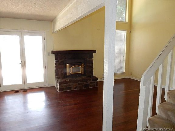 Mature trees shade this unique condominium in central Tulsa with good size fenced in yard. Covered parking at front door under carport.Fireplace in living room.Wood laminate flooring and more. Nice size deck on back for grilling & entertaining.Pool view.