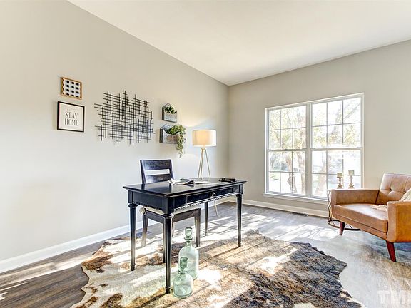 Gorgeous Delta Ridge home loaded with exquisite updates! Open to the family room, eat-in kitchen features white cabinets, granite counters, subway tile backsplash & SS appliances. New LVP flooring & refined lighting throughout downstairs. Flex room can serve a variety of purposes. Vaulted Owner's Suite with walk-in closet. Luxurious bath with white tile shower and dual vanity. Enjoy the flat, private backyard & large deck! Community pool + amazing Raleigh location-close to Crabtree, beltline, 540 & more!