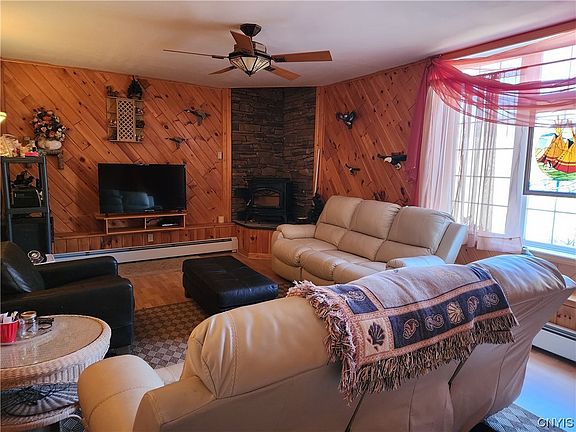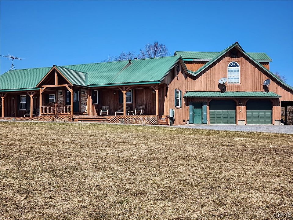 This gorgeous property has endless possibilities. The main ranch home has two bedrooms and two full bathrooms, laundry room, large open floor plan that includes a living room, kitchen and dining area. A large, heated attached garage with a large mudroom completes the primary home. Additional living space is located above and behind attached garage. Beautiful woodwork throughout. A great room, bathroom, spacious primary bedroom and bathroom, and an additional bedroom. Total square footage of both living spaces totals 2344. Seller currently rents out garage addition to a recreational renter and receives $500 per month. This space could be connected with main house or utilized as an in-law apartment. Heating and electrical are separate if buyer decides to rent out. Open covered porch with concrete floor makes the perfect setting to entertain guests. A second, heated, detached 29 X 49 garage with full second floor completes this scenic property.