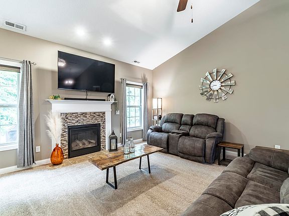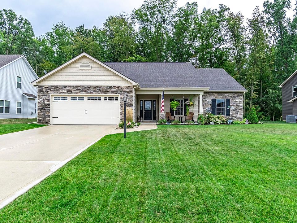 Your immaculate 3 bedroom/2 bathroom ranch style home in Bear Creek Estates is waiting for you! Walk up onto your covered front porch and in the front door you are met with an open air concept home featuring a great room with cathedral ceiling and a gas fireplace. Off of the great room you have a formal dining area and a kitchen that has a raised breakfast bar counter, plenty of cabinetry, tiled backsplash, walk in pantry and stainless steel appliances. On the other side of the home you are greeted with a full bathroom and 2 good sized bedrooms. Finally, the master suite features a walk in closet, bathroom en suite with granite countertops, dual sinks, soaking tub and separate shower! The backyard oasis is overlooking a wooded area for your privacy and relaxation. The home is landscaped exquisitely and tastefully for you and your neighbors to enjoy. Tons of upgrades include an invisible screen on patio and the garage door, insulated slab floor system, sprinkler system for the front yard and a pull down attic with plenty of subfloor storage! Home is located conveniently close to I 69! This move in ready home is ready for you!