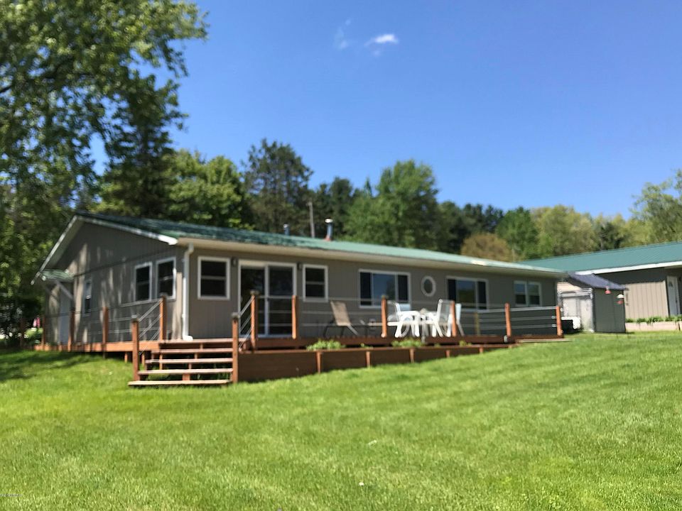 Lake Living At Its Finest! Well maintained 2 bedroom 1 full bathroom waterfront home. Open floor plan great for entertaining! Knotty pine interior. Ceramic flooring throughout entire home. Updated top to bottom, updates include: well & pump, steel siding and roof, plumbing, vinyl replacement windows, 200 amp electrical service, insulation, kitchen countertops, deck railing and so much more! Four season room with sliders out to deck overlooking the lake. Deck features unique railing. Garden area. Beautifully landscaped. Fruit trees. Wildlife galore. Attached garage with attic space great for storage additional kitchen sink perfect for canning or cleaning your fresh catch! Detached 26x36 pole barn with two overhead doors, great storage for your toys also includes office area.