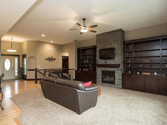 Are you looking for BRAND NEW without the 6 month wait? Check out this absolutely handsome 2 year young, ZERO ENTRY ranch home on a wooded 1.25 acre lot in a peaceful and sought-after NE neighborhood. Impressive open design with large, light capturing windows, floor to ceiling stone fireplace flanked by shelving, gorgeous kitchen with rich, cherry soft-close cabinetry, wood flooring, large center island and 5 burner gas stove. Beautiful master bath with soaker tub, tile and glass shower and heated porcelain floors. Beautiful walk out family room with 2nd stone fireplace, a fantastic bar with glass front cabinetry and wine frig. A-tech alarm, Sonos sound system, and a 4th garage or workshop with overhead door, heat and air. Your dreams have come true! *** Taxes are partial.