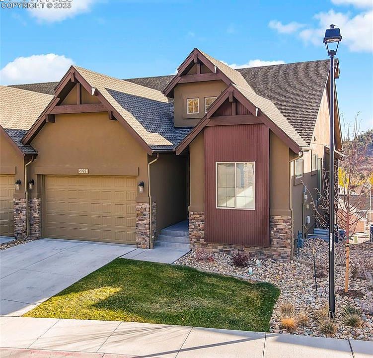 An incredible chance to own this beautiful patio home in Mtn Shadows! Home was built in 2020 by Vanguard Homes at an unbeliveable 2020 price! Over 3300 sq feet of amazing space, this "Rockledge" floor plan boasts a sunlit open layout, vaulted ceilings, 9ft ceilings, walls of windows for exceptional natural light! Main level boasts master suite with private bath featuring large step-in shower & walk-in closet, second bedroom could be used as a wonderful in-home study/office, large living room with gas fireplace and opens to covered composite deck with views of City & Ute Valley Park! The kitchen features a large slab granite island, large pantry, gas range, stainless steel appliances & tons of counter & cabinet space! The professionally finished lower level is ready for your dream family room, rec room, theatre - whatever your heart desires. This walk-out basement also has two additional large bedrooms & two full bathrooms, storage area & walk out to rear patio. Home is located minutes from Garden of the Gods & it's across from Ute Valley Park with all it's hiking & wildlife. You will enjoy Mtn views from the front of the home! Come view this low maintenance home today in the highly sought after Mountain Shadows community!!!