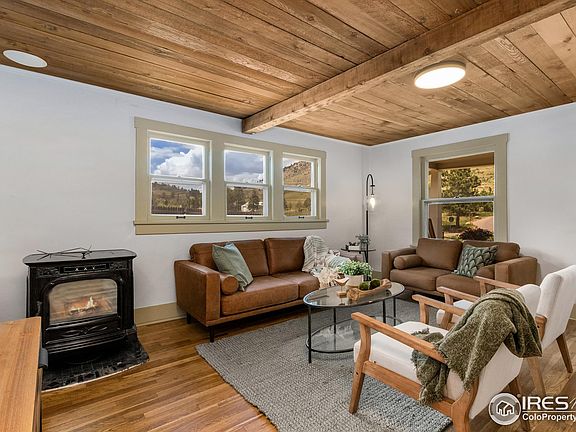 Excellent live/work opportunity in this historic 1915 home with a garage/loft above Horsetooth Reservoir. Property is over a half acre and located directly across from Horsetooth Mountain Open Space. Operate your businesses from the garage, rent upstairs to another business/artist/etc, live in the home - the options are endless! Garage/shop was built with 12'h walls that are 12" thick - everything is over-engineered and designed to keep your client's business or hobby organized and convenient. The included compressed air system is built into the walls and there are nozzles everywhere, both downstairs and upstairs, as well as on the front exterior. The floor support system for upstairs is red iron to accommodate the built-in trolley hoist system on the main level. Radiant flooring on both levels of the garage provide heat - or use the pellet stoves on each level for an alternative. Both levels also have a half bath. Shelves in the shop are constructed to hold thousands of pounds - owner stored over 20,000lbs of motorcycle parts and equipment on those shelves. The enormous 11.34kW solar system (installed in 2019 and owned, not leased) provides ample electricity for whatever hobbies you might dream up! NEW heat pump and AC in home, with propane furnace backup. And in the shop loft a new heat pump and AC unit is also new, so multiple heating exist for both spaces. The historic home was originally in Fort Collins and was moved up in one piece in the 1970s to rest on a full concrete basement on this beautiful lot. Nearly everything on the main level is original - plaster walls, kitchen cabinets, windows, hardwood floors, doors, etc. All plumbing and electrical has been replaced and improved over the years - so you get the quaintness of a historic home with modern conveniences. Newer high-wind standing seam roof provides peace of mind for decades. Yard is fully fenced - and there are producing apple trees at the back of the property.