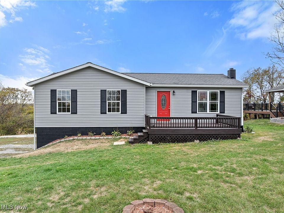 Welcome to this beautifully renovated 3-bedroom, 2-bathroom home nestled on a spacious 1.7-acre lot in the serene countryside of Shadyside, Ohio. This home has been meticulously updated, offering modern comfort while maintaining its charming appeal. Step inside to discover a brand-new kitchen, complete with sleek stainless steel appliances, custom cabinetry, and stunning countertops—perfect for the home chef or entertaining guests. The layout flows seamlessly into the living and dining areas, providing ample space for gatherings. The two newly updated bathrooms feature modern fixtures and finishes, offering a spa-like retreat for relaxation. Each of the three bedrooms is generously sized with plenty of natural light, creating a peaceful and inviting atmosphere. Outside, you'll love the newly built deck, ideal for outdoor dining, grilling, or simply enjoying the picturesque views of your expansive lot. With 1.7 acres of land, there's plenty of room for gardening, outdoor activities, or even adding a pool. Additional features include a two-car garage, offering plenty of storage and convenience. Whether you're seeking a private retreat or a place to enjoy life, this home has it all. Don't miss your opportunity to own this gorgeous, move-in-ready property! Schedule your showing today!