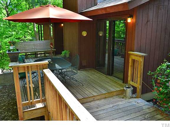 Privat Oasis.All new flooring & refinished hardwood floors.New stainless steel appliances.Vaulted ceilings.Expansive decking.Large windows.Partial basement, partitioned & some heated/finished SF-great for art studio,workshop,rec,office.Attached carport.New carpet etc. Only 10 minutes to UNC.12 to Duke.20 to RTP.1 minute to I40 entrance.Low Orange County taxes.Not in city limits.