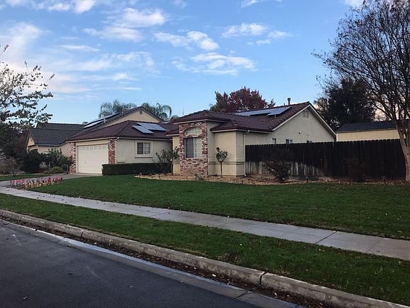 This wonderful Fresno home truly shows pride of ownership! Featuring great curb appeal, 4 bedrooms, 2 baths, tile roof, solar panels, 2 car attached finished garage, whole house water softener, new paint, and ceiling fans throughout home! The indoor utility room is spacious, and offers several cabinets, utility sink, and pantry. There is aggregate flooring in the common areas, new carpet in living room and in one of the bedrooms. Hall bath has been nicely remodeled. The spacious kitchen features a newer freestanding gas stove, plenty of cabinets and counter top space, and is open to the dining area offering amazing views of the beautiful backyard! Relax and enjoy the inviting large back & side yards featuring a covered patio, Spa cement pad, and potential RV parking! This home comes equipped with a security alarm system for peace of mind. There are too many great features to list them all! Come see for yourself! Call for your private showing of this wonderful Fresno home TODAY!