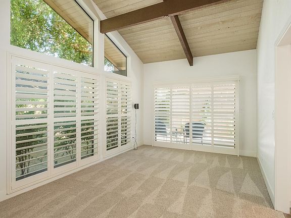 Feel like you're stepping into Pottery Barn/Restoration Hardware! This owner of less than two years has completely remodeled this lovely 2 bedroom/2 bath home in gate El Adobe development in NW Fresno and is now relocating out of the area. Upon entering through the gorgeous new front door, be wowed when you step in to this single level home with high end vinyl flooring, high ceilings, floor/ceiling adobe fireplace in Living Room with an accent wall of paneling to match the trendy new doors, casing, trim, baseboards, plantation shutters, recessed lighting! Amazing open and airy kitchen with honed black granite counters, KW Woodworks new drawer boxes, doors & hardware, new stainless slink & Kitchen Aid Hood. New high end carpeting in LR DR & bedrooms w/thick pad, new thermostat, receptacles, switches, fans & hardware! No stone left unturned here! AC unit appx three years new. Newer adobe wall on side patio enhanced with party lights & lovely pots with drip irrigation. The Association has granted permission for two segments of the back block wall of this property be removed if one would like to enjoy the lush grounds of Oso de Oro Park. The Association will also be removing the large tree at the back, as it's raising the walkway. Lush Grounds @ El Adobe including meandering paths to the large Clubhouse with gym, pool, spa and tennis courts conveniently located across from this home w/extra guest parking! Private & secluded!!