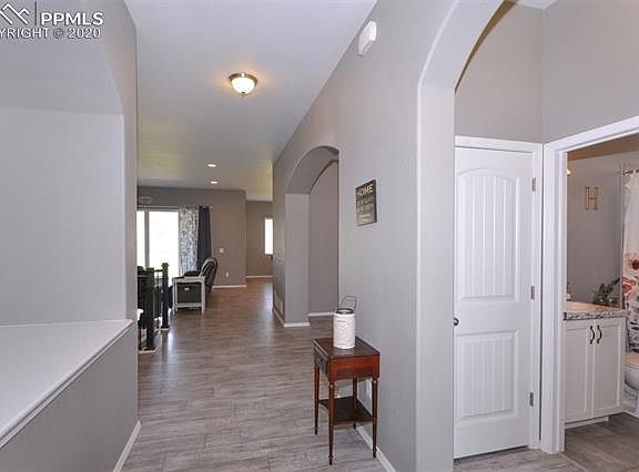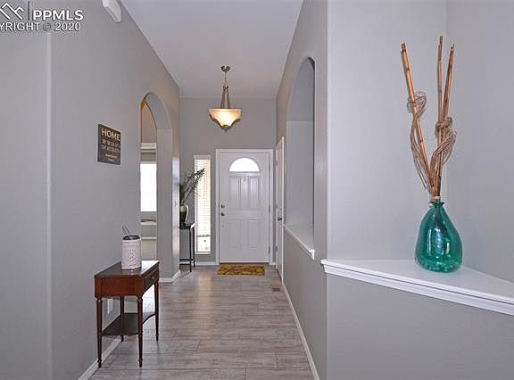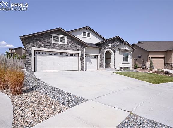 Why wait to Build? Absolutely GORGEOUS Ranch home located on a large lot, itâs in a quiet cul-de-sac, with Award Winning D-20 schools, Wolf Ranch is where you want to be! This home is the popular Paradise floor plan built by Classic Homes. Thereâs plenty of room for everyone with 5 bedrooms, 4 bathrooms, and a 3 Car garage, and includes Many Upgrades throughout. This is MAIN LEVEL Living at itâs Best. The moment you enter this home, youâll find beautiful luxury wood laminate floors throughout and you immediately feel that The Paradise is an Open Floor Plan Concept, where the Kitchen, Dining nook and Great Room come together in True Harmony. Our Favorite- The DOUBLE SLIDER Patio Doors open right out to a covered Extended back patio & backyard, Perfect for Family & Friends, entertaining & grilling (gas line installed), bringing in tons of natural light. WOW- This kitchen is a modern âBlack & Whiteâ kitchen design featuring White Staggered cabinets, SS appliances w gas stove for the Chef in the family, complimented w/ more âblack & whiteâ granite counter tops and unique tile back splash that really pulls this kitchen together along with space for Casual dining too. Also, included on the main level youâll find a Formal Dining room, additional Bedroom (or Office) along w/ an adjacent Full bath. An over sized Master bedroom and bath is located conveniently off the living room, more natural light & a Large walk-in Closet. The Master bath has tile flooring, raised counter tops, brush nickel fixtures, tile backsplash, soaking tub and shower complete with tile & shelf. The Basement is the place for family time with a super Large rec room, with plenty of room for an entertainment center or pool table and three more bedrooms, two large fully tiled bathrooms & more storage under the stairs. The community offers 7 miles of trails, multiple parks, summer concerts, a rec center, a pool and even a Lake, minutes from 1-25, close to Powers Blvd & plenty of dining and shopping.