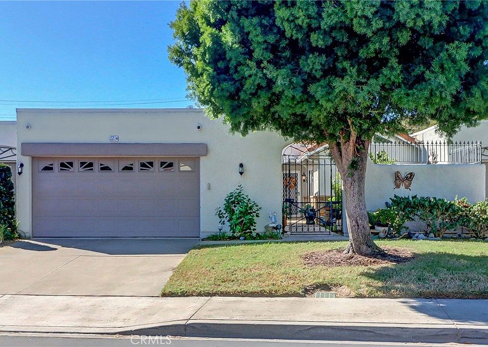 Gorgeous remodeled, expanded single-level “El Prado” in a lovely neighborhood setting in the active 55+ Laguna Woods senior community. With approx. 2000 sq. ft. of living space, this 3-bedroom, 2-bath residence boasts high-end materials & tasteful design concepts throughout. Excellent curb appeal & situated on one of the few streets in Laguna Woods connected to the gas line. Beyond the elegant wrought-iron gate is a small patio w/Meyer lemon tree & attractive custom stone pavers leading to the front door. Spacious living room easily accommodates large furnishings & features a gas fireplace w/remote control starter & lovely travertine wall. Expanded reconfigured kitchen is a gourmet’s dream. Beautiful custom cherrywood cabinets & earth-tone granite countertops create a warm inviting environment. High-end stainless-steel appliances incl. Wolf gas cooktop, Dacor double oven plus warming oven & microwave, Bosch dishwasher. Add’l kitchen features incl. wine fridge, dual sinks, built-in mixer in a lift-up cabinet, under-cabinet lighting & outlets, soft-close drawers, built-in spice rack, wine glass rack, lazy susan & many deep pull-out drawers maximizing the kitchen’s storage capacity. Adjacent breakfast room has vaulted ceiling w/skylights & looks onto front patio. Large enclosed private rear sunroom w/ceiling fans & skylights is easily accessed via the living room & primary bedroom & perfect for year-round relaxing/entertaining. Primary bedroom suite features abundant closet storage w/mirrored doors. Both bathrooms have skylights, pull-out storage & walk-in showers w/convenient accessory shelves. Primary bathroom features dual sinks & magnificent earth-tone granite countertops. One guest bedroom has been expanded to store the washer/dryer & create add’l closet space. This bedroom has a convenient separate entrance to the front patio. Either guest bedrooms could easily serve as a sewing room, exercise studio, arts & crafts workshop or home office. Add’l upgrades incl. smooth ceilings, crown molding, recessed lighting, dual-pane windows, central HVAC, skylights in living room, kitchen & both bathrooms, water softener, brand new water heater & gorgeous distressed hickory wood plank flooring throughout (except the bathrooms which have custom tile flooring). Lots of storage in the 2-car garage. Driveway easily accommodates 2 add’l vehicles plus ample street parking for guests. Do not miss this magnificent residence!