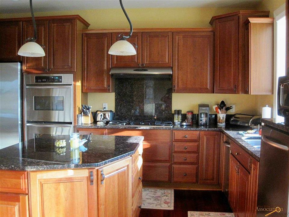 Parade of Homes Winner in 2005. Great family home with lots of extras, convenient location & nice views. Entertain in the huge family room with wet bar, kitchenette, 10X8 nook, and 16X19 media room. Two bedrooms down. 5th bedroom 13X14 has walk in closet. Walk-out basement to concrete patio. Two storage areas 15X12 and 19X9. Brick Archway on the 8X24 covered front porch. Spacious 8X14 entryway. Formal dining room with trayed ceiling. Kitchen Aid double ovens-convection & 5 burner gas cook top. Breakfast nook with doors to both decks, one w/gas connection for grill. Main floor laundry with sink & storage cabinets. Master with 14X7 walk in closet, master bath features double sinks, Water Haven custom shower with multiple heads & large jetted tub. 10' ceilings in kitchen, living room & dining room. Three main floor bedrooms w/ceiling fans and 9' ceilings, third bedroom being used as office. Two gas fireplaces w/thermostatically controlled remotes. Broker owned.