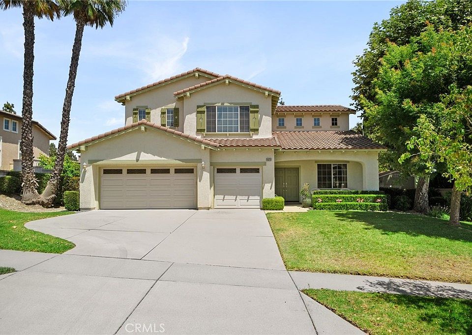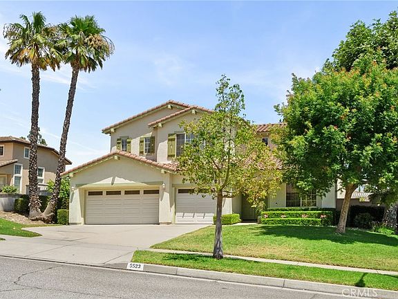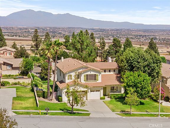 Nestled on a serene cul-de-sac with stunning mountain views and exceptional curb appeal, this beautiful home in the highly sought-after Ridgeview Estates of Rancho Cucamonga combines thoughtful design with elevated living. Beyond the welcoming front porch lies 2,871 square feet of beautifully appointed space featuring hardwood flooring, an abundance of natural light from a wall of windows, and soaring 20-foot ceilings. The layout is both elegant and functional, with 5 spacious bedrooms and 3 upgraded full bathrooms, including a versatile main-level bedroom with double-door entry and ensuite bath, ideal for guests, a home office, or multigenerational living. The formal living and dining rooms are both tasteful and grand, highlighted by dramatic ceilings and generous space for entertaining or intimate gatherings. At the heart of the home, the upgraded kitchen showcases Corian countertops, an oversized island, stainless steel appliances, generous storage and custom lighting for enhanced ambiance. The kitchen and breakfast nook flow seamlessly into the large family room, warmed by natural light and a cozy fireplace, perfect for relaxing evenings. A privately situated staircase leads upstairs to the expansive primary suite, where understated elegance meets serene city-light views. The ensuite bath offers upgraded Quartz countertop vanities, a soaking tub, walk-in shower, and a large walk-in closet. Three additional bedrooms, each with ceiling fans, a full hall bath, and a custom built-in shelving niche, complete the upper level. Step outside to the well maintained backyard, with lush mature landscaping, including grapevines ready to harvest, block wall privacy, and a sparkling hot tub for relaxing under the stars. Multiple seating areas provide plenty of space for outdoor dining, BBQs or quiet evenings enjoying mountain views. Additional highlights include an extended driveway, a three-car garage with abundant storage, newer water heater, newer carpet, QuietCool attic fan, main floor laundry with sink and built-in cabinetry for extra storage, shed and no HOA. Perfectly located near award-winning schools, Day Creek Park, scenic trails, and Victoria Gardens for premier shopping, dining and entertainment, this home seamlessly blends luxury, comfort, and timeless style one of Rancho Cucamonga's most desirable neighborhoods. Come see why this home isn't just beautiful, its thoughtfully designed for the way you live every day.
