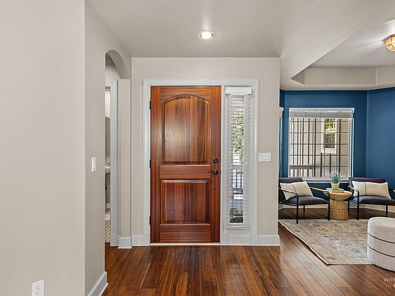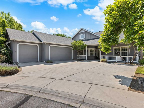 Nestled in the beautiful Surprise Valley, this charming, updated single-story home offers 4 bedrooms, 2.5 bathrooms, a study, and a 3-car garage. The open great room concept features high ceilings and rich hardwood floors, which were updated in 2019, flowing into a functional layout that provides versatile spaces for everyday living and entertaining. The roof and gutters were replaced in 2020. The spacious primary suite boasts a corner soaking tub, a glass-enclosed shower, dual vanities, heated floors, and a walk-in closet. The private patio opens up to the green space, complemented by an inviting front porch. Enjoy being minutes away from Lucky Peak, Oregon Trail Reserve, and the Boise River. Surprise Valley amenities include 2 swimming pools, tennis courts, a clubhouse, and walking paths. This home combines modern updates with a prime location for an ideal living experience.