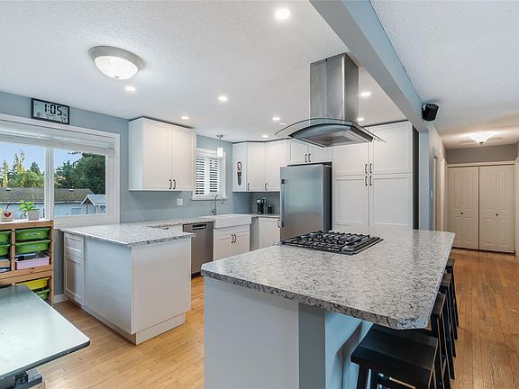 Tucked away at the end of a quiet cul-de-sac, this property is packed with lifestyle and potential. The fully fenced .35-acre lot offers an electric gate, loads of parking for RVs, boats, or work vehicles, plus space to unwind with a covered deck and hot tub. A standout 616 sqft shop comes complete with its own bathroom and car hoist — ideal for mechanics, tradespeople, or hobbyists. Need more work or creative space? A separate fully wired 10×10 office/workshop has you covered. Inside, the home is warm, functional, and flexible. The main level features a bright, open-concept kitchen and living area designed for easy living and entertaining. With 4 bedrooms and 2 bathrooms total, the layout shines — especially with a fully equipped second kitchen and separate entrance downstairs, already set up as a 2-bedroom suite. Perfect for family, guests, or a solid mortgage helper. Measurements approx., verify if important.