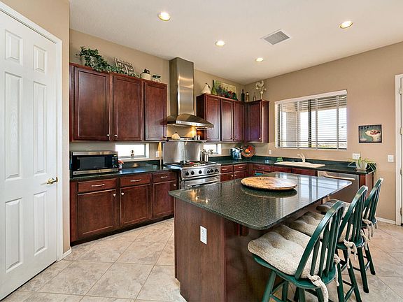 Rare elevated over sized lot overlooking Mingus Mountain from beautiful covered flagstone patio. Meticulously maintained, home features upgraded 42'' cabinets with slide-out shelving, solid surface counter tops, and stainless steel appliances including GE Monogram gas range and convection oven with stainless steel commercial hood. The great room has a large island and gas corner fireplace. Epoxy flooring in a 3 car insulated and over sized garage with 8' doors. Last but not least, there is a Bosch Aquastar On-Demand tankless hot water heater. The two wall-mounted candle holders in the great room do not convey. The storage shed on the side of house does convey.