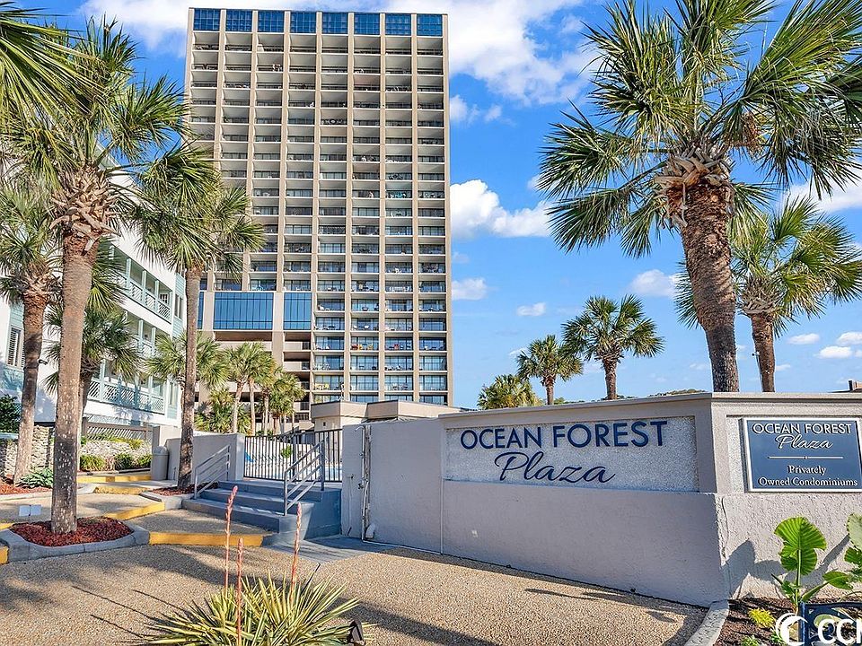 Stunning Fully Furnished and updated 1 bedroom 1 bath ocean view condo with full kitchen. This unit features a true 1 bedroom floor plan with hall entry, separate bedroom and bath and combined living and dining. Make this home your primary residence or enjoy the benefits of having it on a rental program. From the 15th floor you can see for miles up the coastal line or just watch the beautiful ocean view and from your private balcony. Located in the beautiful Ocean Forrest Plaza, within a popular "The Golden Mile" of Myrtle Beach this building offers an expansive lobby with three elevators, indoor sauna, hot tub and pool and an outdoor pool with plenty of area for sun tanning. Take advantage of the separate laundry area or the workout room. The building is pet friendly for owners and the HOA takes care of all your expenses except insurance. The beach is just a 3 min walk across the street and loads of shopping and restaurants are just minutes away. Grab your piece of the beach today.
