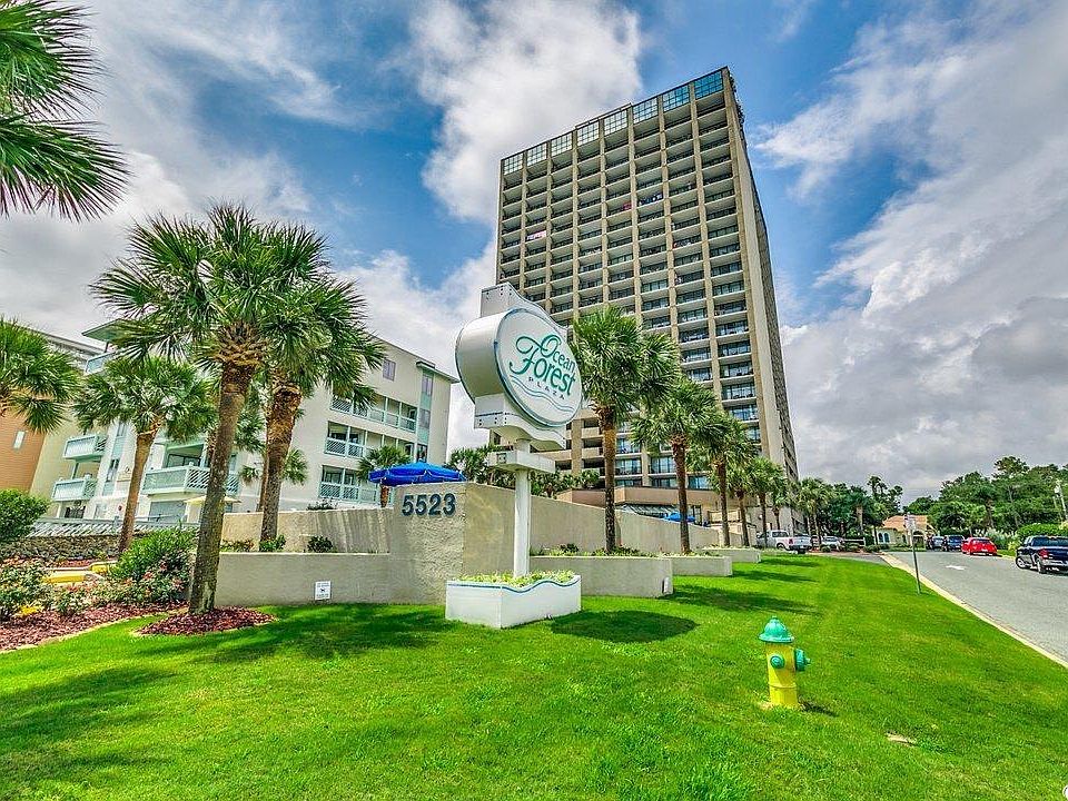 Welcome to your dream 1 bedroom villa at Ocean Forest Plaza Resort! This stunning oceanfront condo is on the prestigious Golden Mile & Cabana Section of Myrtle Beach. Spacious owners suite, tile floor throughout, fully equipped kitchen. This exceptional TRUE 1-bedroom, 1-bathroom oceanfront condo, offers a rare opportunity for coastal living at its finest. Lovingly decorated condo has been transformed with year-round living in mind including aLED fireplace.The condo offers a host of upgraded features that set it apart from the rest. From solid surface counters  and mirrored backsplash to keep the ocean views coming. Every detail embraces beach living. Designer furnishings and a full kitchen with dishwasher elevate the living experience to new heights. The Plaza caters to your family featuring an array of amenities such as indoor and outdoor pools, a sauna, exercise room, sidewalk linear exercise trail, and shaded balcony. This resort is conveniently located in the heart of Myrtle Beach, only minutes from fine dining and shopping.